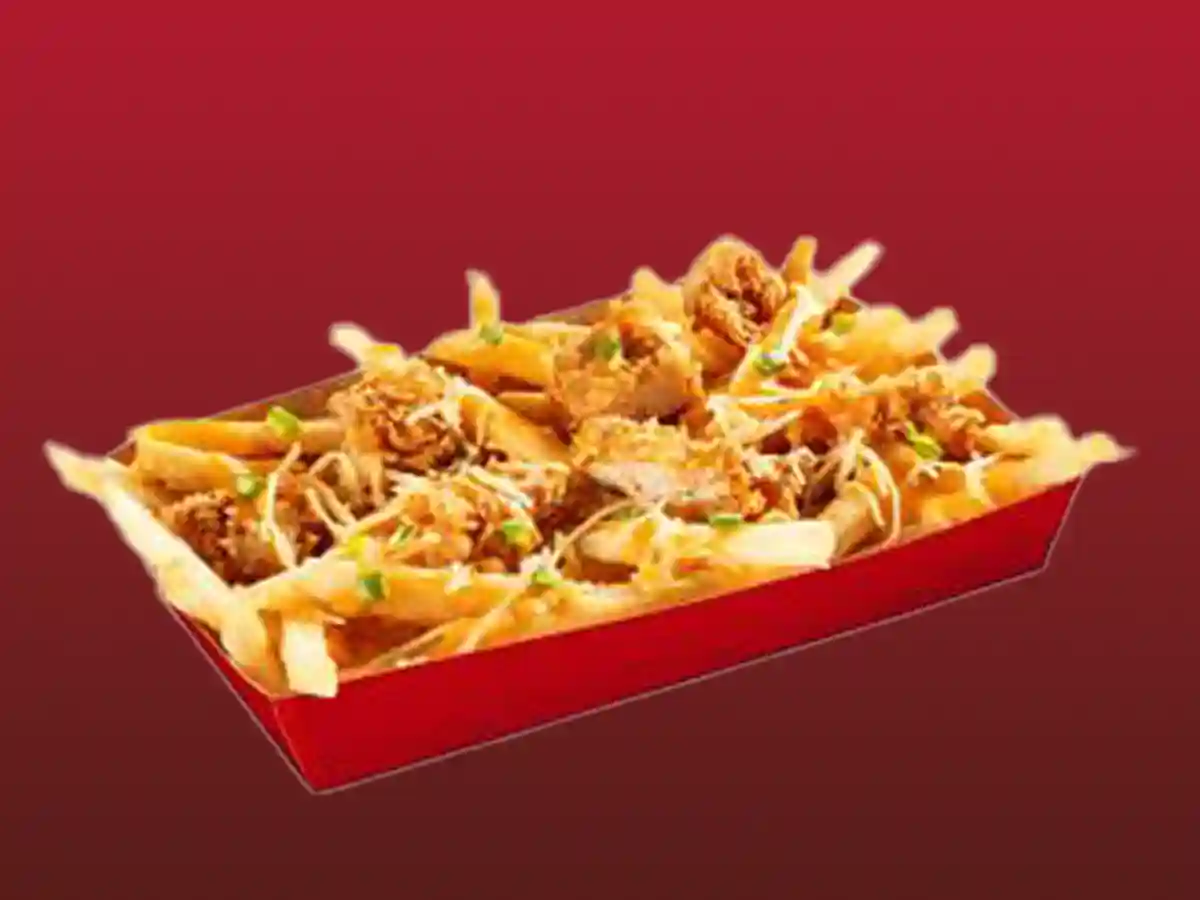 Crispy, golden French fries generously topped with a rich and creamy cheese sauce.