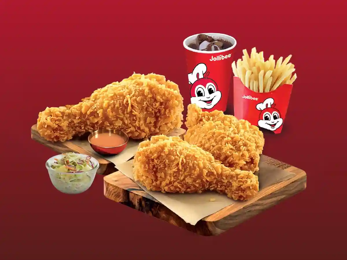 3Pcs Spicy Chickenjoy, 3Pcs Original Chickenjoy, 3 Large French Fries, 3 Coleslaw, 3 Buns, 3 Pepsi (Large)