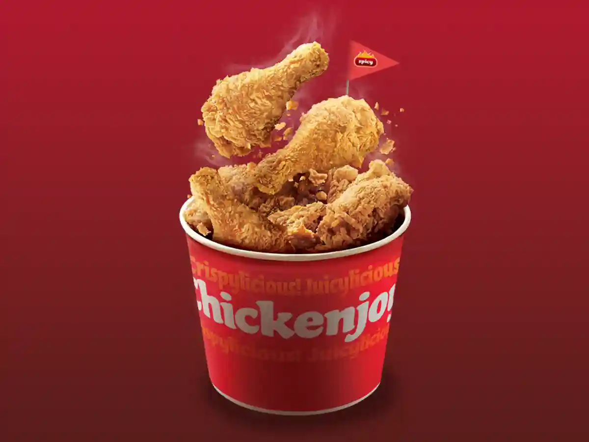 2Pcs original Chickenjoy, 2Pcs spicy Chickenjoy, 2 Half Jolly Spaghetti, 2 Peach Mango Pie, 2 Pepsi(Large)